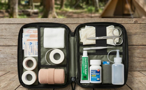 子どもがいるなら、子ども用に使える虫刺され薬や解熱鎮痛薬、小さめの絆創膏、擦り傷を洗いやすい水を少し多めに用意すると安心です。薬は年齢や体重で使えないものもあるので、購入前に確認を。転倒が増えやすいので、ガーゼとテープの消費量は大人だけのキャンプより多めで見積もるのが無難です。